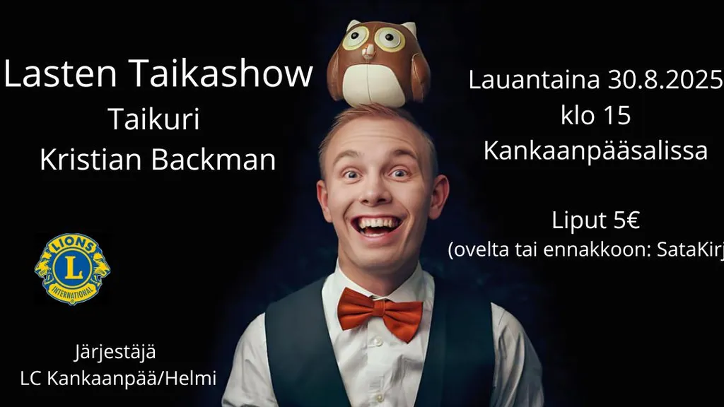 Lastenlauantaina Kankaanpääsalissa viihdyttää taikuri Kristian Backman – luvassa ihmetystä ja iloa koko perheelle! Liput 5 €, myynnissä ovelta sekä ennakkoon SataKirjassa.